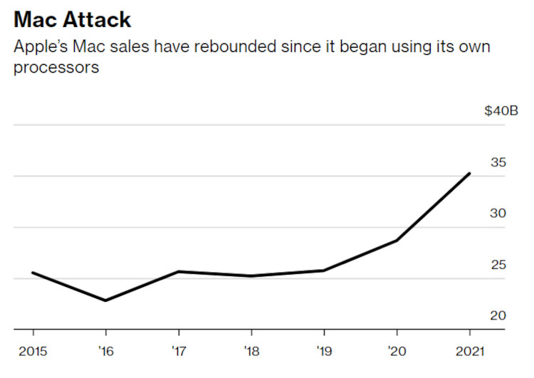 As vendas de Mac disparam com a introdução de chipsets proprietários //Fonte da imagem: Bloomberg