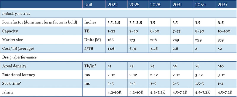 Apesar de a velocidade do eixo do HDD permanecer em 7200 rpm (RPM), um aumento na densidade de gravação terá um efeito positivo na velocidade de leitura/gravação sequencial. Ao mesmo tempo, o desempenho das operações de entrada/saída do HDD por terabyte (IOPS) para modelos de unidade única provavelmente diminuirá. No entanto, o IEEE espera que as vendas de discos rígidos cresçam de 166 milhões de unidades em 2022 para 208 milhões em 2028 e 359 milhões em 2037. Isto se deve à crescente necessidade de armazenamento de dados acessível e espaçoso, para o qual os HDDs são a solução ideal.