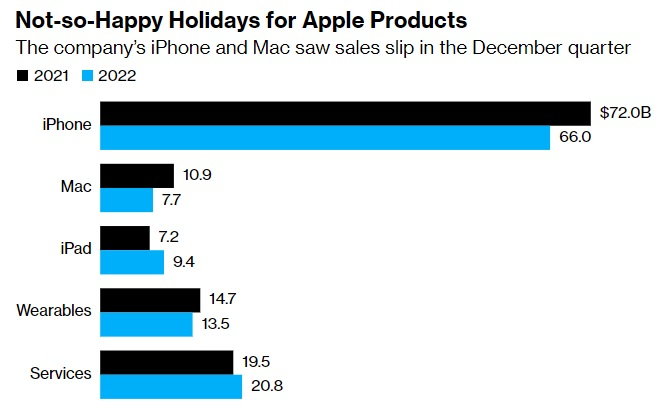 Na semana passada, a Apple divulgou sua primeira queda nos lucros trimestrais desde 2019. A empresa citou interrupções no fornecimento causadas por problemas nas cadeias de produção chinesas. No entanto, o CEO Tim Cook observou a desaceleração do mercado chinês, que só recentemente abandonou as rígidas restrições sanitárias que paralisaram a economia.