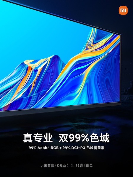 O relato oficial do Mi Notebook na rede social chinesa Weibo anunciou que o primeiro monitor Xiaomi com resolução 4K será apresentado no dia 4 de dezembro. A julgar pelos teasers publicados, a novidade será voltada para usuários profissionais. O monitor terá cobertura de 99% dos espaços de cores Adobe RGB e DCI-P3.