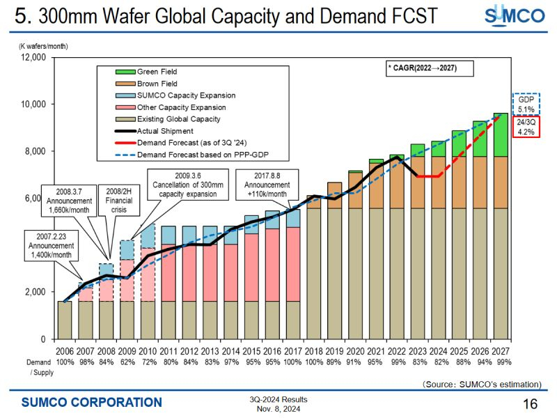 No entanto, existe uma área de atividade que as sanções anti-chinesas não afetaram. Estamos falando do fornecimento de wafers de silício para a produção de chips utilizando processos tecnológicos avançados com padrões de 5 a 2 nm inclusive. Em determinados segmentos de mercado, as japonesas Sumco e Shin-Etsu Chemical controlam quase 100% do mercado de pastilhas de silício nesta área. Ao mesmo tempo, a demanda por wafers de silício usados na produção de memória HBM crescerá. Nesta área, a Sumco espera que a procura cresça a uma CAGR de 36% nos próximos três anos.