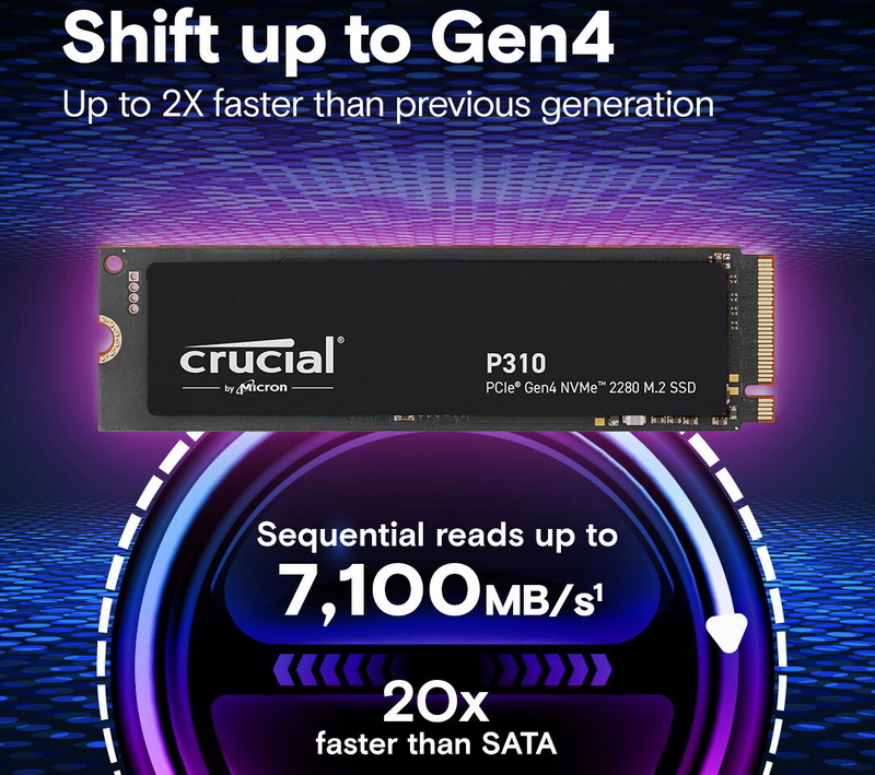 A marca Crucial da Micron expandiu sua série Crucial P310 de unidades de estado sólido NVMe com modelos M.2 2280 de tamanho normal com interface PCIe 4.0 x4. Anteriormente, o fabricante lançou um SSD desta série no formato compacto M.2 2230.