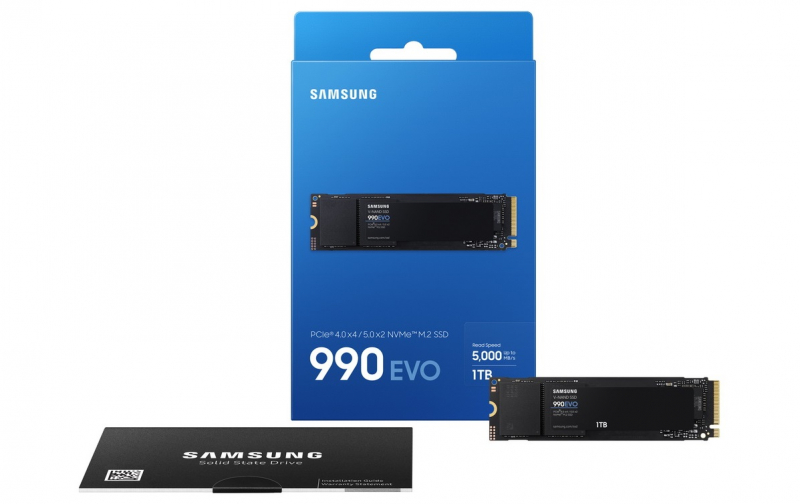 O novo produto oferece velocidades de leitura sequencial de até 5.000 e gravações de até 4.200 MB/s, além de desempenho em operações de leitura e gravação aleatórias de 700 mil e 800 mil IOPS, respectivamente. A unidade competirá com soluções baratas como o TeamGroup MP44L ou o mais popular WD_Black SN770. A vantagem do SSD Samsung 990 Evo NVMe é o uso de um controlador de 5 nm com maior eficiência energética, bem como chips de memória flash V6P TLC NAND de 133 camadas. A unidade não possui cache DRAM próprio e usa parte do sistema de memória do PC para essas finalidades.
