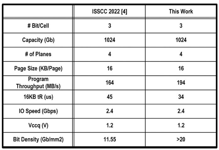 Na conferência ISSCC 2023, representantes da SK hynix fizeram uma apresentação na qual anunciaram a criação da primeira memória NAND 3D do mundo com mais de 300 camadas. O documento foi elaborado por 35 engenheiros da empresa, o que mais uma vez enfatiza a complexidade de aprimorar o processo técnico para a produção de memória flash multicamadas. Vale ressaltar que os desenvolvedores não apenas aumentaram a densidade de gravação, mas também aumentaram significativamente a largura de banda dos chips: de 164 MB/s para 194 MB/s.