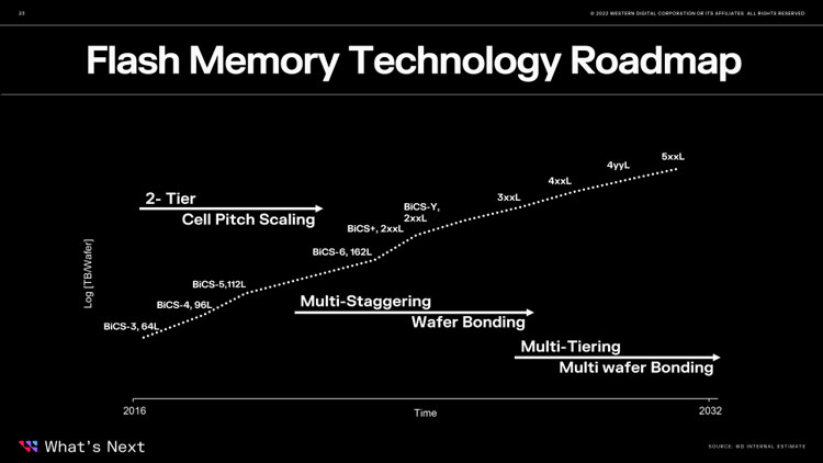 Esta semana, a Western Digital revelou seus planos de desenvolvimento de memória 3D NAND para os próximos anos. Entre outras coisas, a empresa destacou que, juntamente com sua parceira japonesa Kioxia, está desenvolvendo chips de memória flash de 162 camadas com área de célula reduzida e memória flash de alto desempenho com mais de 200 camadas.