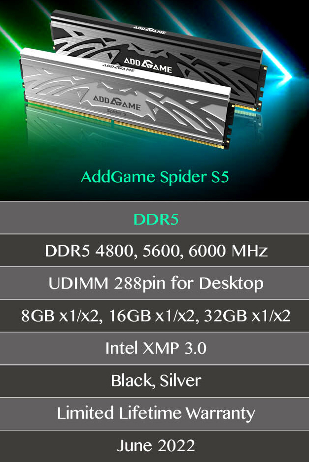 A Addlink Technology anunciou os módulos de memória AddGame Spider S5 DDR5 projetados para computadores de jogos de alto desempenho.