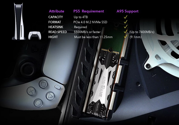 A Addlink apresentou a nova série AddGame A95 de SSDs M.2 NVMe para uso com o PlayStation 5. A série consiste em modelos SSD de 1 TB, 2 TB e 4 TB que oferecem suporte a PCIe 4.0 x4.
