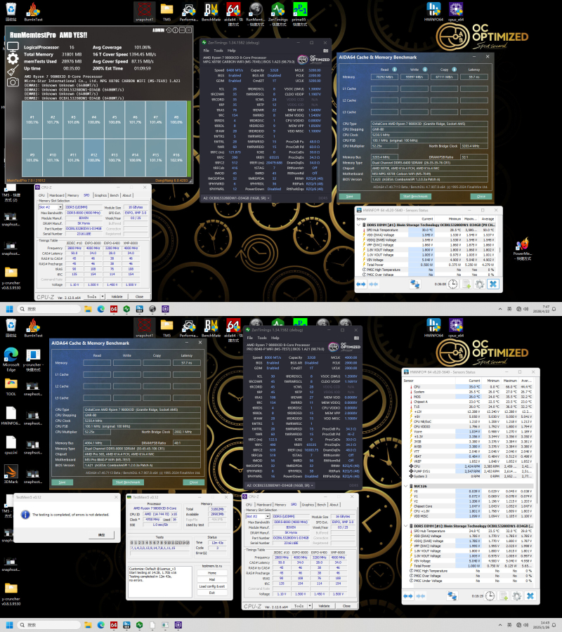 A empresa afirma que os novos módulos de RAM suportam overclocking manual adicional de até 8400 MT/s, mantendo tempos CAS baixos em CL34. Isso é possível ao usar placas-mãe da Asus, MSI, Gigabyte e ASRock. A Biwin forneceu capturas de tela do programa Memtest demonstrando a operação dos novos módulos de RAM em placas-mãe com chipsets AMD X870, B850 e B840 em combinação com processadores Ryzen série 9000.