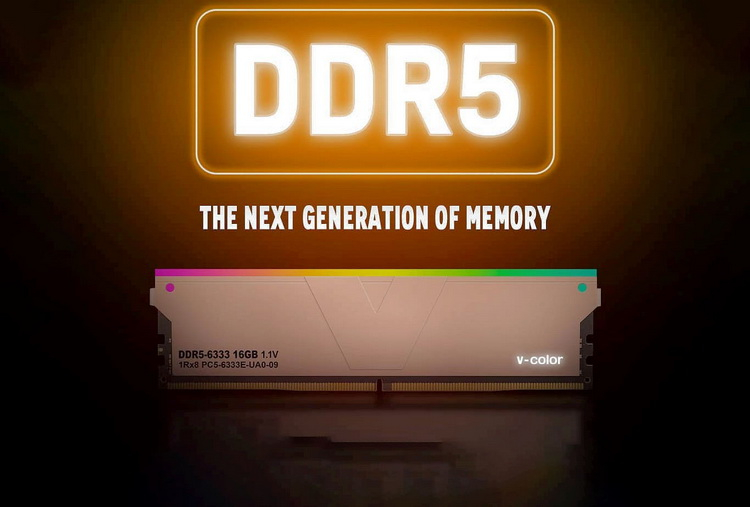 A julgar pela inscrição no dissipador de calor de resfriamento, que, aliás, tem retroiluminação ARGB, o módulo usa uma organização ponto a ponto de chips de memória com interface de 8 bits e fornece uma taxa de transferência de dados de 6333 MT / s , que está além da especificação JEDEC padrão adotada para memória DDR5 (4800 MT / s). Ao mesmo tempo, para V-Color DDR5-6333, a voltagem nominal para memória DDR5 é 1,1 V.