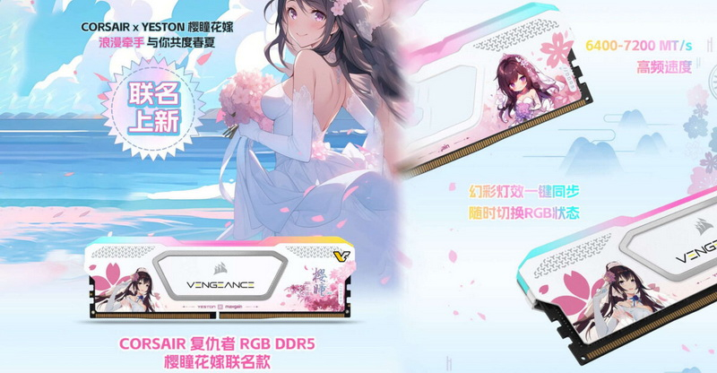 A Corsair, em colaboração com o fabricante chinês de placas de vídeo Yeston, lançou os módulos de RAM Vengeance Sakura DDR5. Yeston é conhecido por seus designs incomuns e coloridos de aceleradores gráficos que usam temas de anime.
