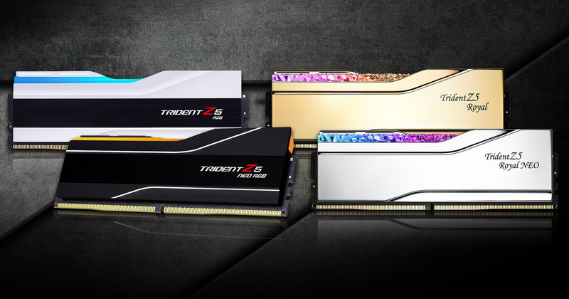 G.Skill anunciou o lançamento dos módulos RAM das séries Trident Z5 RGB e Trident Z5 Royal com velocidades de 6400 MT/s e baixas temporizações CL30-39-39-102. Os novos produtos serão oferecidos na forma de kits de dois canais com capacidade total de 32 (2×16) GB.