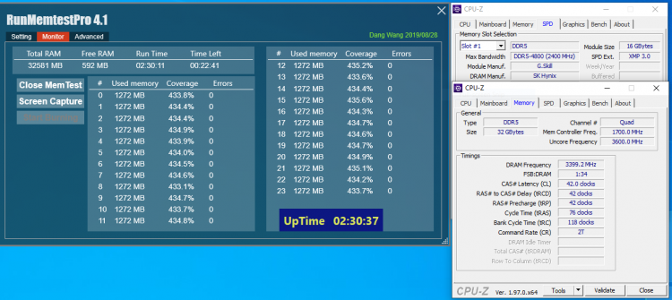 O segundo conjunto de RAM G.Skill Trident Z5 DDR5-6800, também consistindo em dois módulos de 16 GB, é construído com chips de memória SK hynix. Os testes internos do fabricante mostram que esses módulos de memória funcionam nas temporizações CL42-42-42-76.