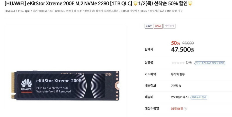 A Huawei começou a vender unidades de estado sólido NVMe de consumo eKitStore Xtreme 200E PCIe 4.0 na Coreia do Sul. O modelo de unidade de 1 TB é oferecido atualmente por apenas US$ 32 nas taxas de câmbio atuais – isso é significativamente mais barato do que soluções semelhantes oferecidas pelos concorrentes.