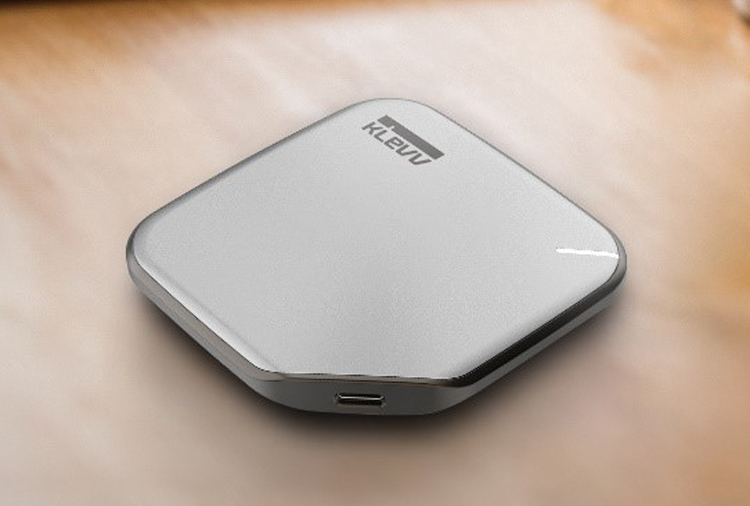 O modelo KLEVV S1 é feito em uma caixa quadrada, com um dos cantos em bisel. Aqui está uma porta USB 3.2 Gen 2×2 baseada no conector USB Type-C, fornecendo largura de banda de até 20 Gb / s.