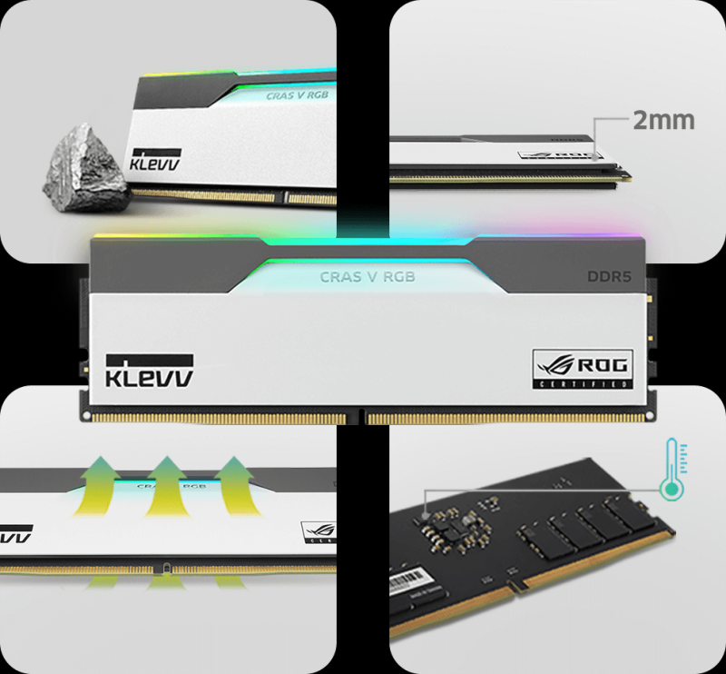 Klevv lançou módulos de RAM DDR5 certificados CRAS V RGB ROG, certificados pela Asus ROG e suportando o perfil de overclocking DDR5-7400. Os novos produtos serão oferecidos na forma de kits de dois canais com capacidade total de 32 (2 × 16) e 48 (2 × 24) GB.