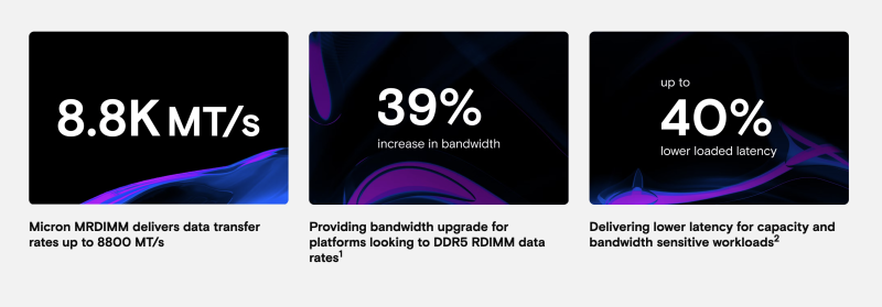 A Micron introduziu módulos de RAM DDR5 do tipo MRDIMM (Multiplexed Rank Dual Inline Memory Module), que são projetados especificamente para sistemas de servidor baseados em processadores Intel Xeon de 6ª geração (Granite Rapids). Novos produtos oferecem velocidade muito alta.
