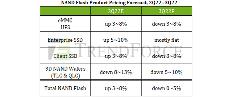 A TrendForce estima que a indústria NAND experimentará um excesso entre julho e setembro. Isso se deve à pandemia em curso, à alta inflação e à atual situação geopolítica. Neste contexto, em particular, as vendas de smartphones caíram. Além disso, a demanda por laptops de consumo e Chromebooks equipados com unidades de estado sólido caiu.