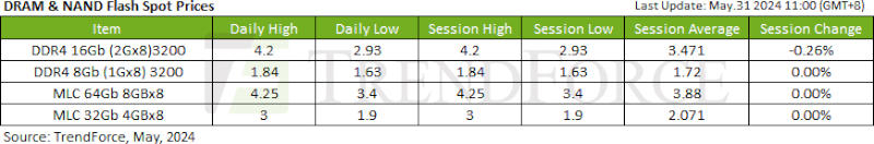 Preços spot para chips DRAM e NAND. Fonte da imagem: trendforce.com