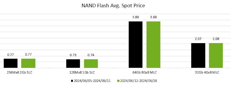 O mercado spot de NAND está a cair de forma semelhante – os fabricantes de SSD acumularam níveis de inventário suficientes, o que impede a recuperação da procura, apesar das reduções de preços dos fornecedores spot. A diferença entre os preços à vista e os preços contratuais está aumentando. E permanece a incerteza quanto à procura de reposição de stocks no terceiro trimestre de 2024. Apenas esta semana, o preço à vista de um wafer 3D TLC NAND de 512 Gb caiu 0,57%, para US$ 3.309. Devido à fraca procura, os mercados DRAM e NAND estão a viver um período desafiante em termos de preços. E no curto prazo, os analistas da TrendForce não esperam uma recuperação dos preços.