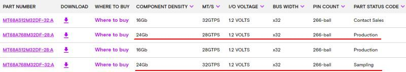 No final do mês passado, a Micron Technology apresentou chips GDDR7 de 3 GB capazes de operar a velocidades de até 36 Gbps, mas ainda não iniciou a distribuição deles. No entanto, o catálogo de produtos no site do fabricante já lista chips com capacidades semelhantes operando a velocidades de até 32 Gbps.