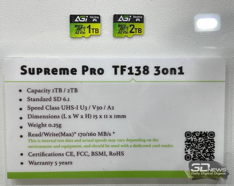 Finalmente, foram introduzidos pen drives e cartões de memória microSD. Os cartões de memória mais avançados aqui são o Supreme Pro TF138. Esses cartões estão disponíveis em versões de 1 TB e 2 TB e oferecem velocidades de leitura sequencial de até 170 MB/s e velocidades de gravação sequencial de até 160 MB/s. Cumprem as classes de velocidade UHS-III, V30 e A2, o que permite gravar vídeos em alta definição e instalar jogos e aplicativos.