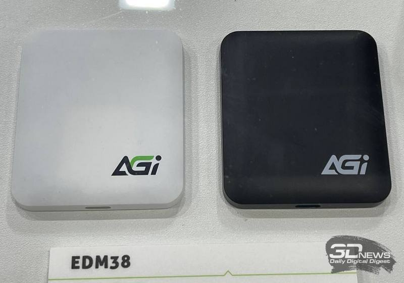 A AGi também mostrou drives de estado sólido EDM38 externos. Eles são oferecidos nas versões preto e branco, cada um em variantes de 1 e 2 TB. A interface USB 3.2 Gen 2×2 Type-C é usada para conexão e a velocidade máxima de leitura e gravação sequencial é de 2.000 MB/s.