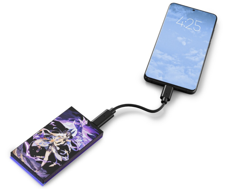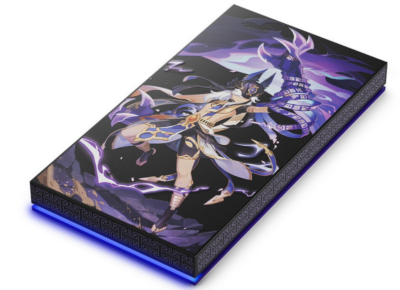A Seagate lançou uma unidade de estado sólido externa baseada no popular jogo de aventura Genshin Impact. O novo produto se destaca pelo design: a parte frontal do SSD apresenta o personagem Saino, e a unidade em si é equipada com retroiluminação LED brilhante.