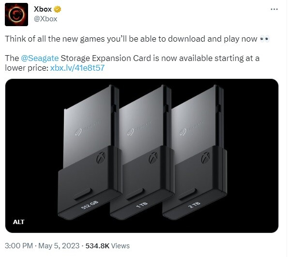 A Seagate reduziu o preço dos SSDs externos para os consoles de jogos Xbox Series X e Series S. Com o lançamento do Xbox Series X e Xbox Series S, apenas a Seagate vendeu cartões de expansão de memória oficiais e apenas 1 TB. Mais tarde, a empresa forneceu uma opção de cartão de 512 GB e um drive externo de 2 TB.