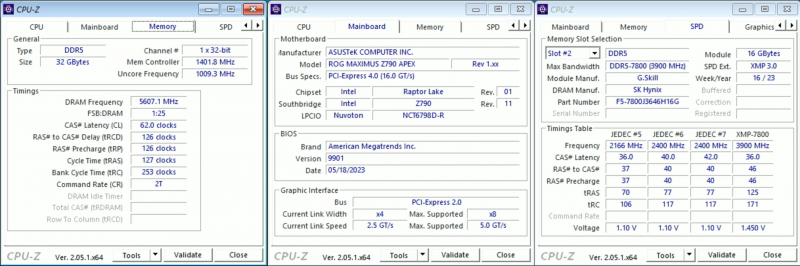 Para o experimento, o entusiasta usou a placa-mãe ASUS ROG Maximus Z790 APEX, além de um conjunto de módulos de RAM certificados para funcionar no modo DDR5-7800 usando perfis de overclocking Intel XMP.