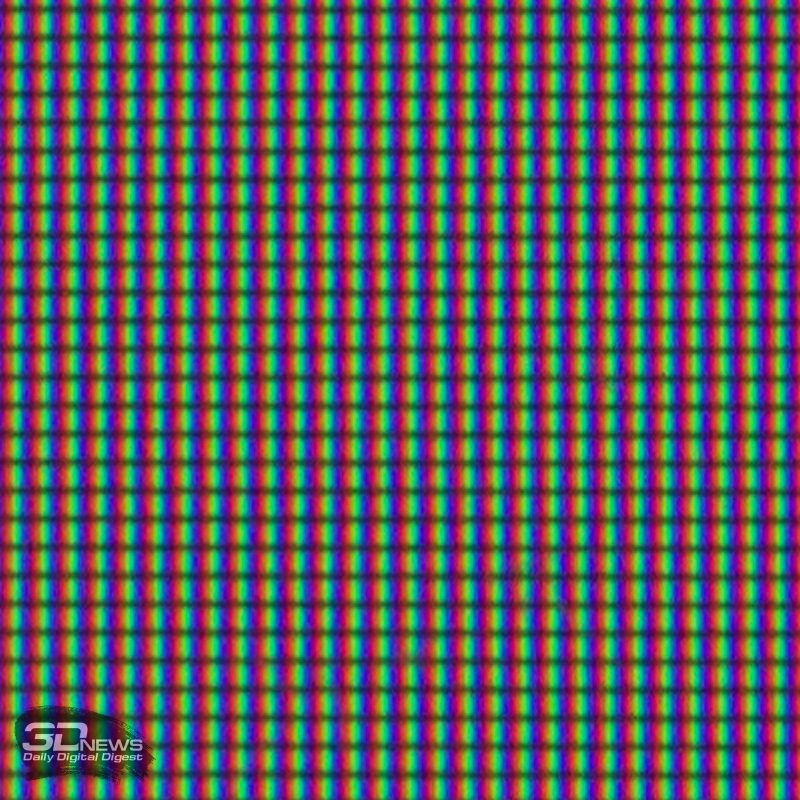 A gama de cores da matriz cobre completamente o espaço de cores sRGB, 88,9% – o espaço Adobe RGB e 93% – o espaço DCI-P3, o que geralmente concorda com as declarações do fabricante (apenas a cobertura DCI-P3 quase fica aquém dos 95% prometidos). A cobertura total de cores da matriz é 144% do espaço sRGB.