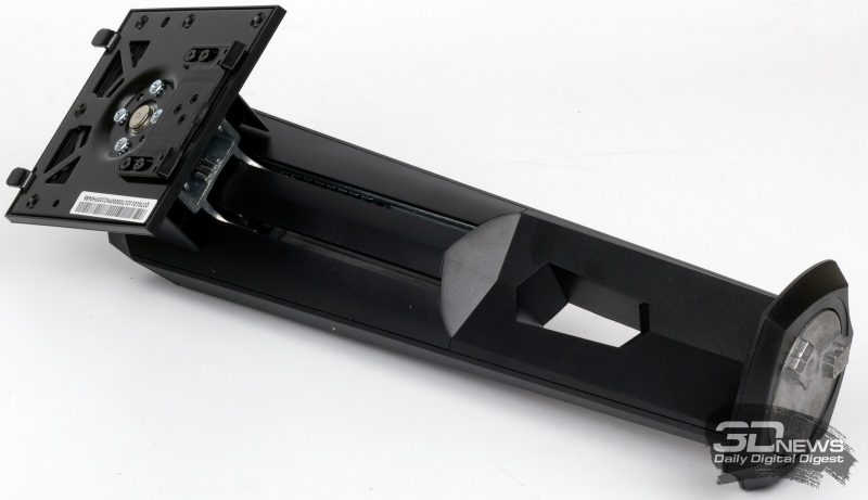 O ajuste está disponível no ângulo de inclinação da tela no intervalo de -5 a 25 °, na altura no intervalo de 115 mm e na rotação para o lado a 20 ° à direita e esquerda.