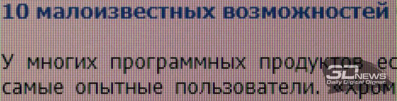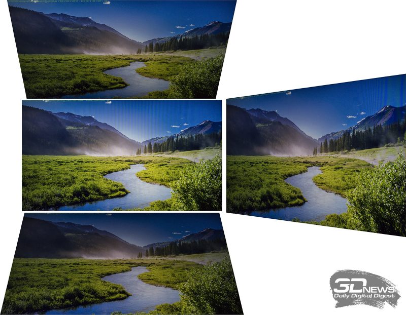 Com pequenas alterações no ângulo de visão horizontal, a imagem na tela não muda em nada. Se o ângulo for aumentado para 30-45 graus, a imagem torna-se um pouco menos contrastante, a saturação de algumas cores é ligeiramente reduzida, as sombras são ligeiramente mais claras, sombras levemente parasitas aparecem em uma ou outra parte da tela – nada incomum. Mudanças no plano vertical fazem com que a imagem na tela se deteriore mais rapidamente.
