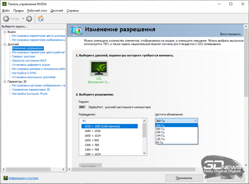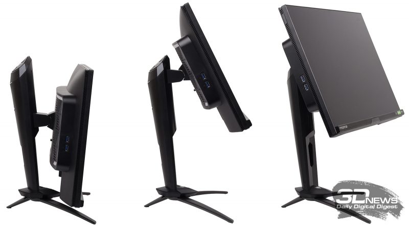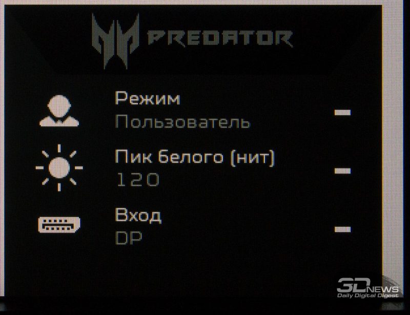 As principais vantagens do modelo: uma matriz de IPS muito rápida (embora, é claro, eu mesmo gostaria de mais rápido – para se livrar de artefatos pelo menos com um nível de overclock padrão) com uma taxa de atualização insuperável, excelente qualidade da configuração de cor de fábrica e o módulo de hardware do NVIDIA G-Sync v2, proporcionando a falta de quebras da imagem na faixa máxima de maior frequência (incluindo e com placas de vídeo AMD devido às especificações do padrão de DisplayPort 1.4). Não há desvantagens e características negativas do predador de Acer X25, mas não podemos, mas notar um bastante alto para o monitor de tal diagonal e permissões do preço.