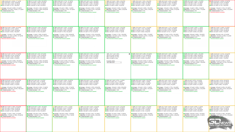 Ao medir o brilho de 45 pontos, o desvio médio do ponto central foi de 7,34%, e o máximo – 18,53%, que pode ser chamado de resultado médio (e em termos de desvio máximo – também é bom, já que é geralmente acima de 20%).