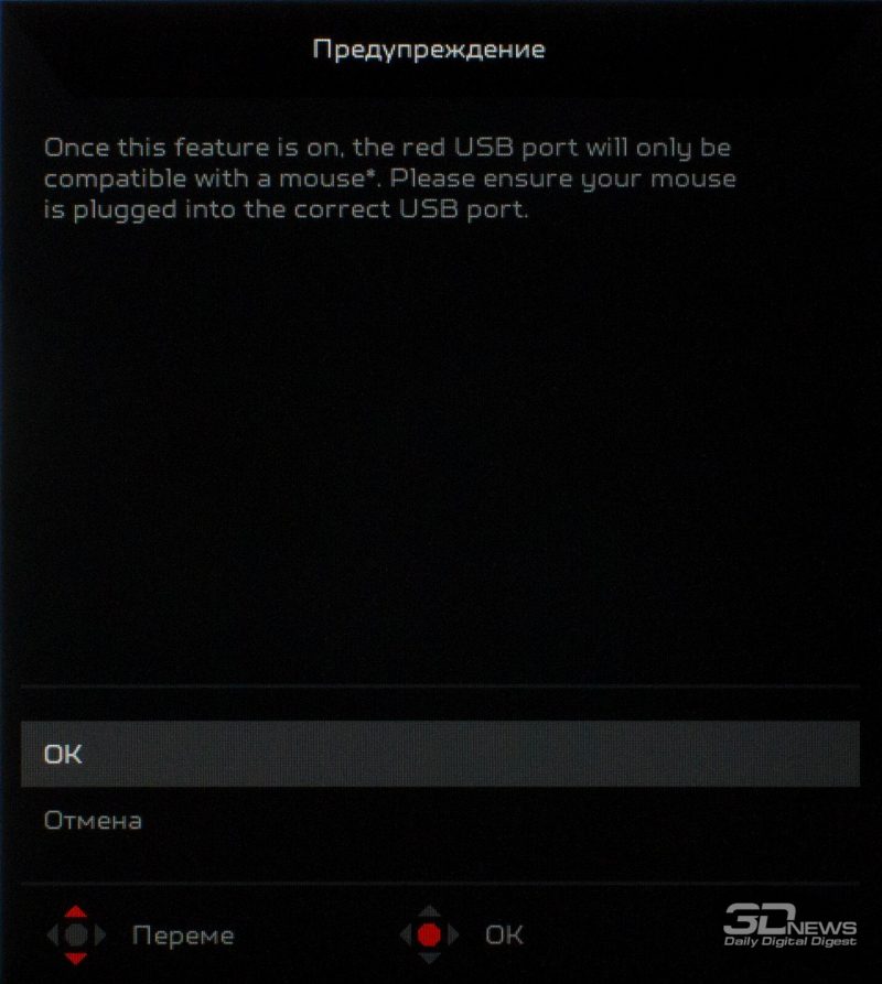 Em seguida são as configurações da tecnologia NVIDIA Reflex, você pode ler mais sobre o qual. Quando o Reflex NVIDIA é ativado, a porta USB vermelha estará disponível apenas para usar um mouse com suporte para essa tecnologia.