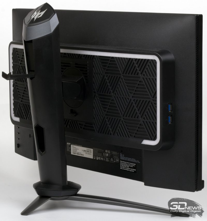 Em contraste com o modelo desta classe anteriormente anteriormente em nosso laboratório, o Acer Monitor possui uma segunda entrada HDMI 2.0, duas conexões adicionais de USB 3.0 tipo e falantes internos. No entanto, a qualidade do som do último é bastante típica para a acústica integrada e é adequada apenas para mensagens de voz do sistema operacional.