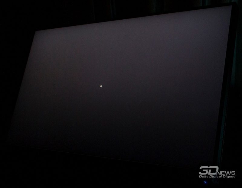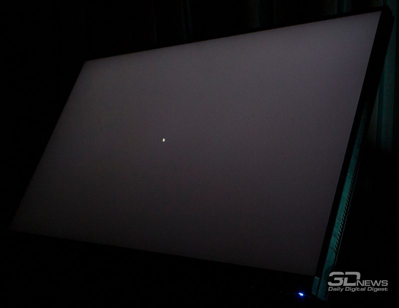O efeito de brilho no modelo em consideração é expresso em matrizes bastante típicas para IPS: com a localização usual do usuário em frente ao monitor, mesmo em um fundo escuro preocupado em uma extensão mínima, e quando visto em um canto mais nítido, embora Torna-se claramente perceptível, mas irrita os tons parasitas não se apressam nos olhos.