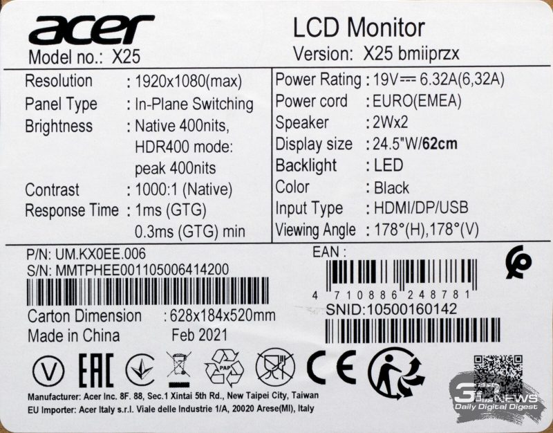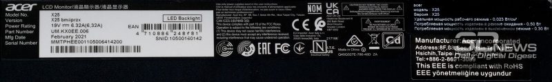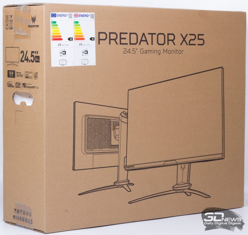 A Acer Predator X25 é uma das novas gerações de monitores com base na matriz Fast-IPS com suporte para a frequência de atualização de 360 Hz. Um modelo dessa classe já foi visitado em nosso laboratório, e também foi equipado com uma matriz AUO e um módulo de hardware NVIDIA G-Sync.