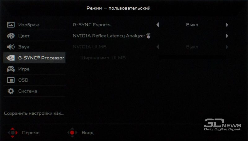 Observe que na seção de configurações do processador G-Sync, quase não há localização russa: apenas o último item “Ulmb Pulse Width” é traduzido.