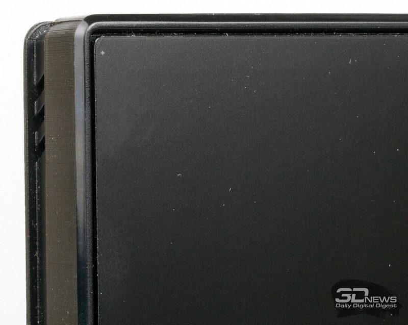 A exibição tem uma estrutura estreita de três lados, mas tem uma espessura muito significativa – especialmente no que diz respeito a uma diagonal relativamente pequena. No entanto, outros análogos de 360 gentis na matriz IPS sofrem de tal “bodyipo”.
