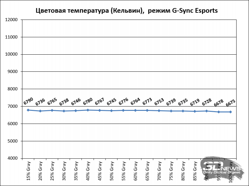 A temperatura de cor é ligeiramente maior do que no modo padrão, o mesmo que observamos em outro monitor deste tipo.