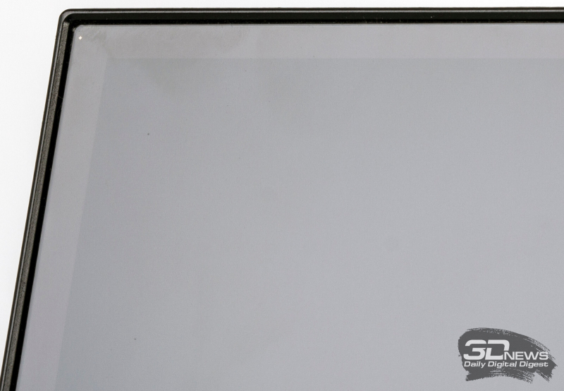 Ao olhar para a tela preta a olho nu, pode-se notar reflexos claramente visíveis nos cantos inferiores (o que é bastante consistente com os desvios que observamos nessas partes da tela) e traços de reflexos pouco pronunciados nos cantos superiores da tela. tela.