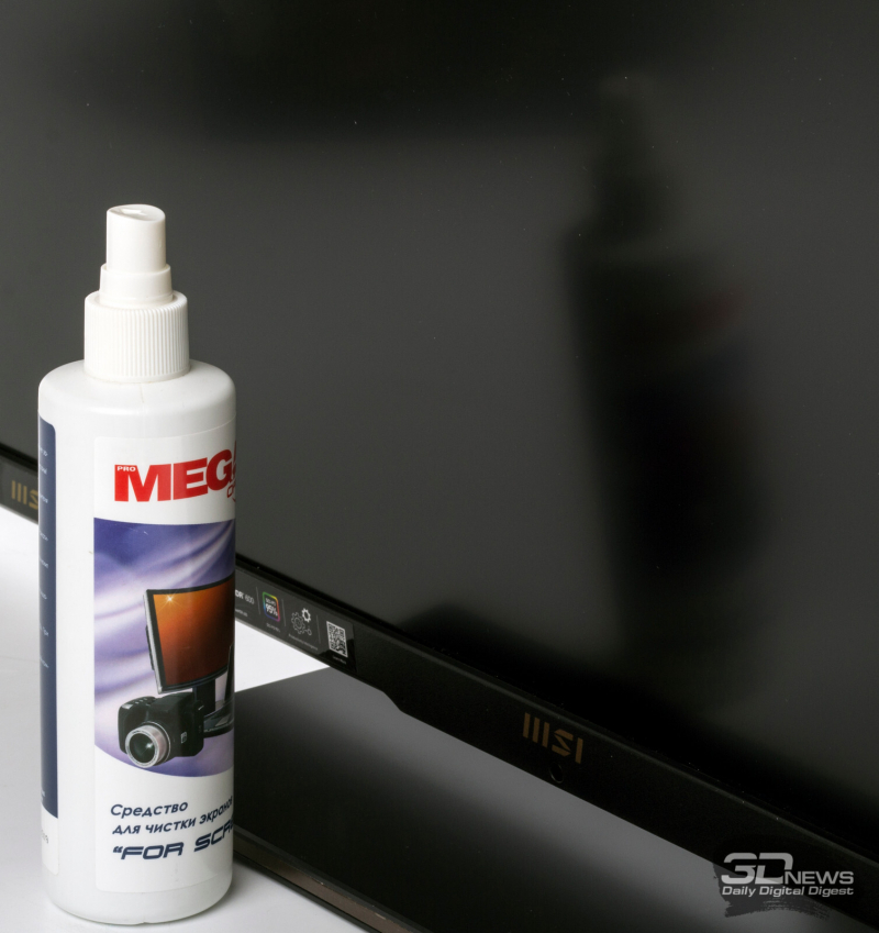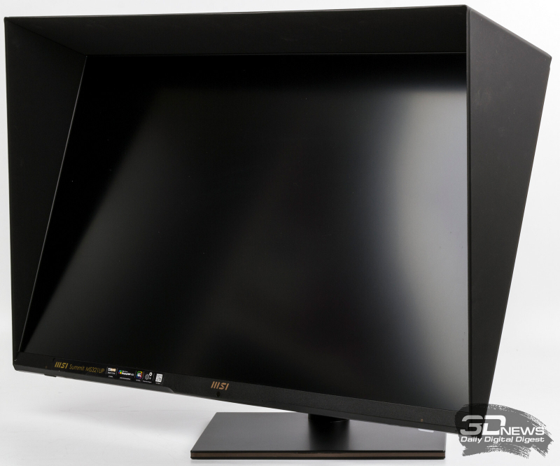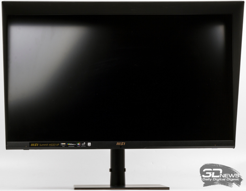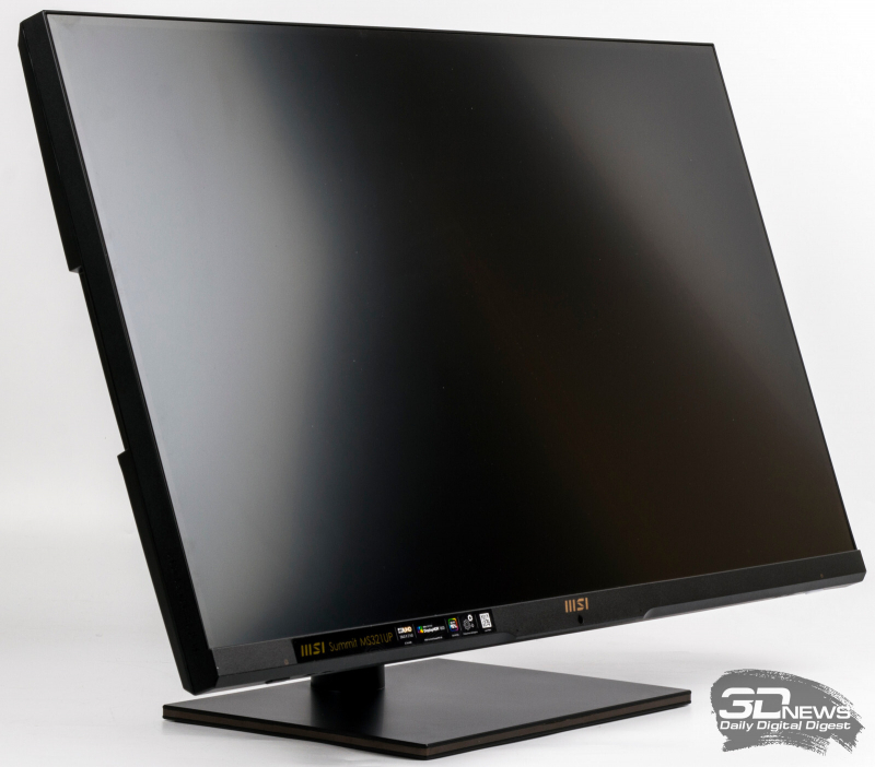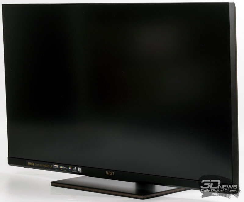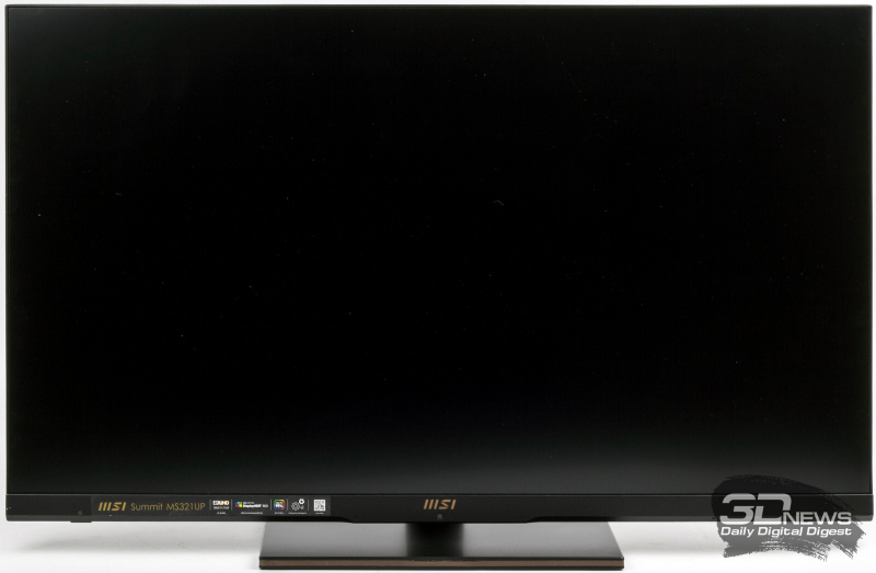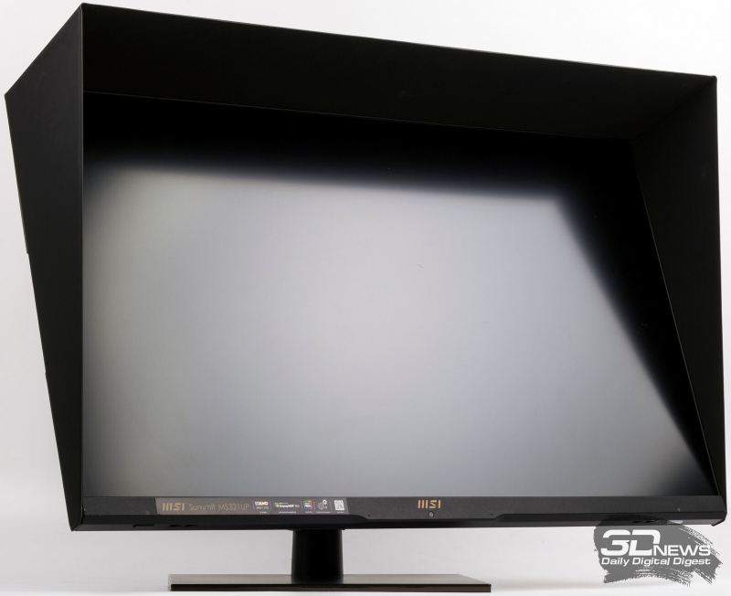 O monitor MSI Summit MS321UP usa uma matriz com uma superfície protetora semi-fosca, que oferece uma proteção bastante boa contra o brilho, mas ao mesmo tempo quase não leva à aparência de um efeito de cristal. O monitor também não é afetado pelo efeito Cross-hatching.
