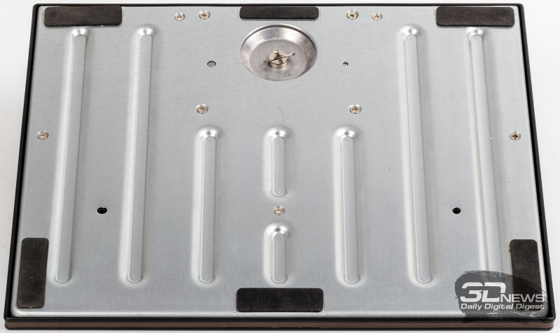 A plataforma de base, por sua vez, tem construção e design originais. A construção maciça com uma abundância de metal na parte inferior está equipada com seis pés de borracha para evitar escorregar.