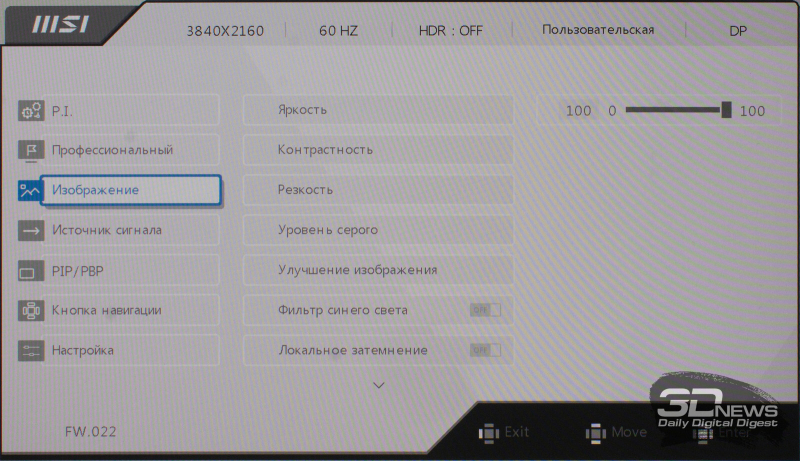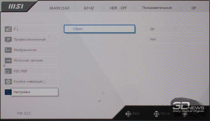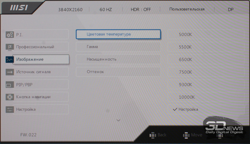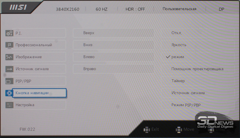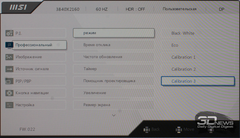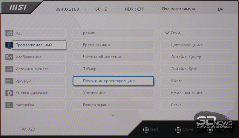 Em geral, podemos notar a melhoria na qualidade da localização russa em relação aos modelos anteriores de monitores MSI, mas o ideal ainda não foi alcançado (por exemplo, as opções do “Designer Assistant” não foram traduzidas para o menu de acesso rápido, embora estejam localizados no menu principal).