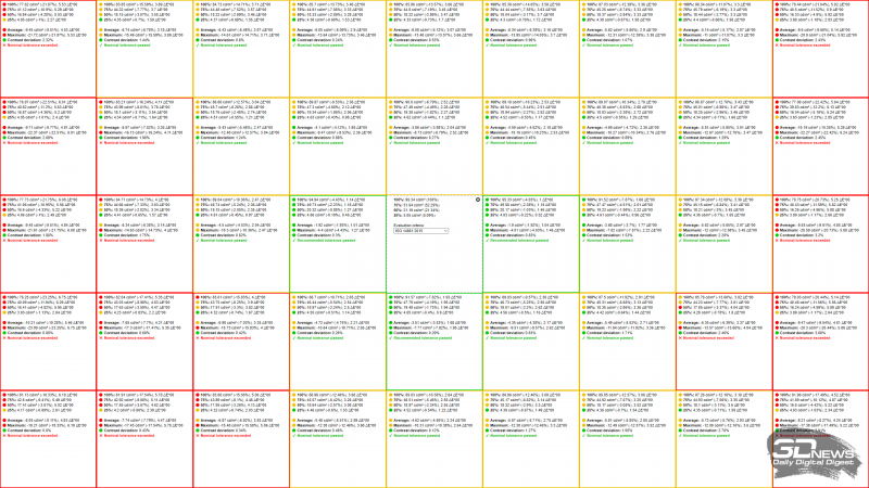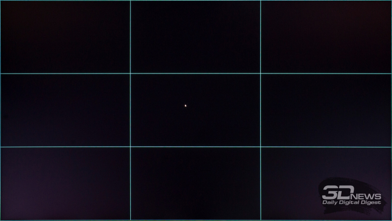 Ao medir o brilho usando 45 pontos, o desvio médio do ponto central foi de 13,75%, e o desvio máximo foi de 23,25%, o que pode ser chamado de resultado muito fraco mesmo levando em consideração a tela grande do modelo. Mesmo muitos monitores de jogos mostram uniformidade de luz de fundo significativamente melhor.