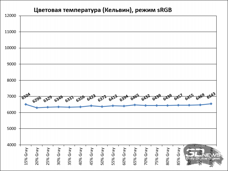 A coisa mais decepcionante sobre a configuração do modo sRGB foi o deslocamento do ponto branco: a imagem, como no modo padrão, parece um pouco sem verde.