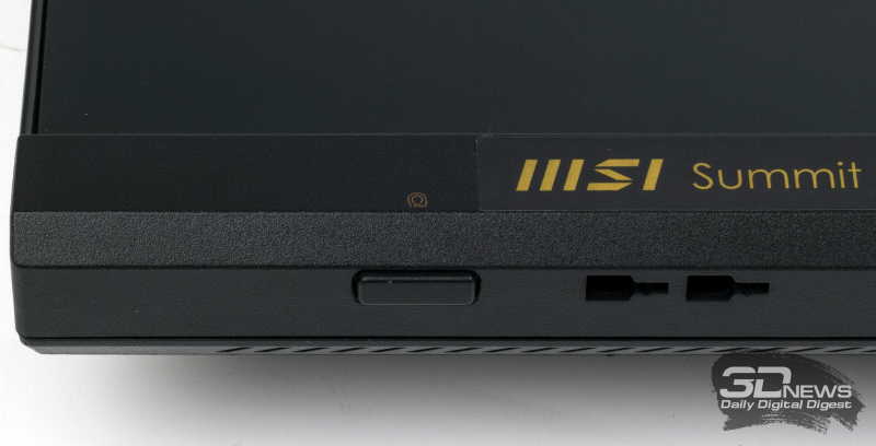 Os dois “chips” mais notáveis do MSI Summit MS321UP são a presença de um visor de proteção contra luz e um bloco conector, no qual, além das portas USB usuais, há um leitor de cartão de memória SD e uma entrada para microfone. Ao mesmo tempo, o visor de liberação rápida em uma montagem magnética pode ser chamado de padrão de conveniência e o leitor de cartão tem uma velocidade decente (o cartão com o qual meu leitor de cartão externo lê arquivos RAW a velocidades de até 84 MB / s foi lido pelo monitor embutido em velocidades de até 90 MB / s) .