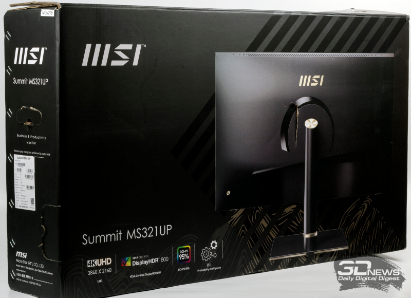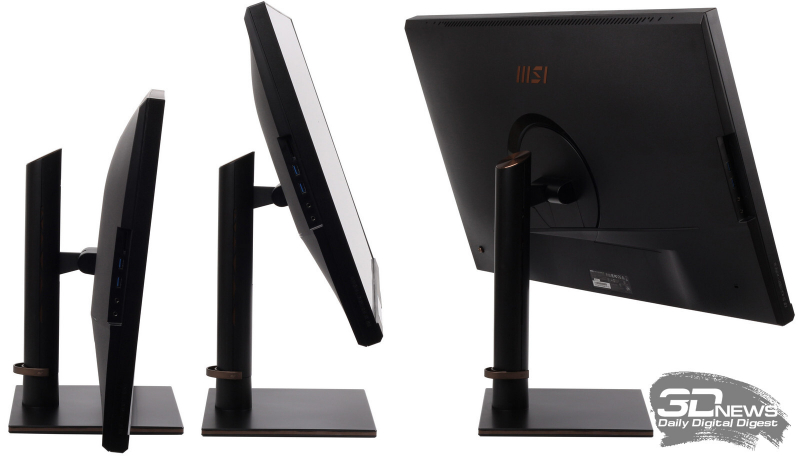 Ao mesmo tempo, a coluna central é a mesma (exceto pela cor) que a do já familiar monitor MSI Prestige PS341WU, o que também é confirmado pelas marcações na placa de montagem da tela.