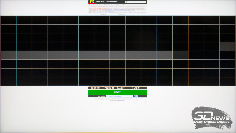 A velocidade da matriz como um todo é bastante típica para matrizes IPS com taxa de atualização de 60 Hz.